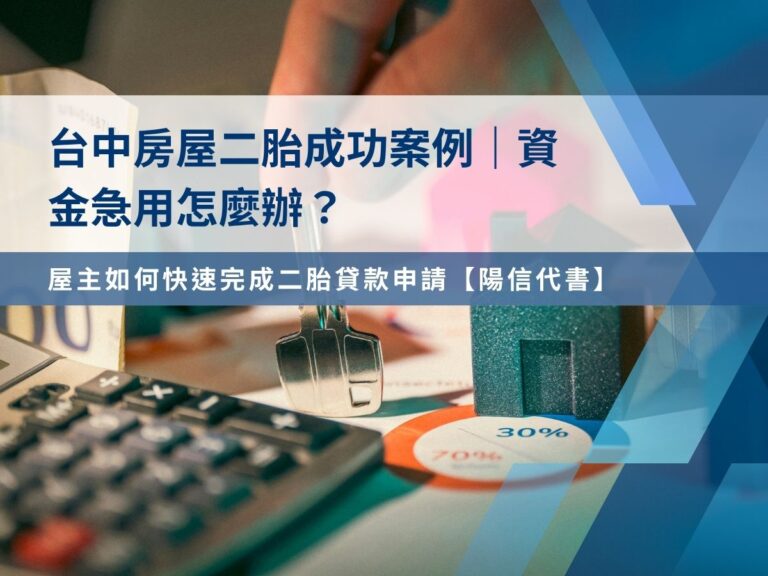 台中民間二胎貸款該怎麼申請?銀行貸不到還有解方!本案例分享屋主如何透過陽信開發成功辦理台中房屋二胎,不看信用、不限職業,靈活還款最安心。想辦二胎房貸?先看這篇!