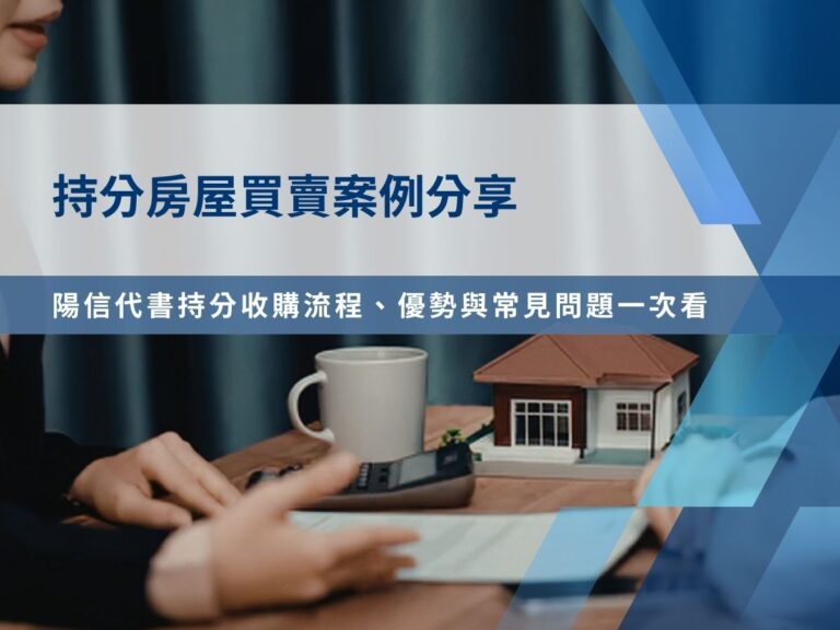 陽信代書提供專業持分房屋買賣與收購服務,快速處理共有問題。看案例、優勢、申辦流程與常見問題完整解析。