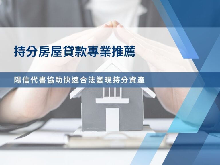 陽信代書專辦持分房屋貸款,協助持分房屋借款與持分貸款評估,即使共有人不配合也能合法辦理,流程透明、撥款快速,安心解決資金需求。